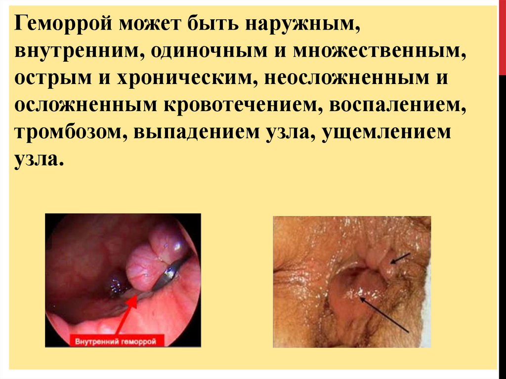 Геморрой может быть наружным,внутренним, одиночным и множественным,