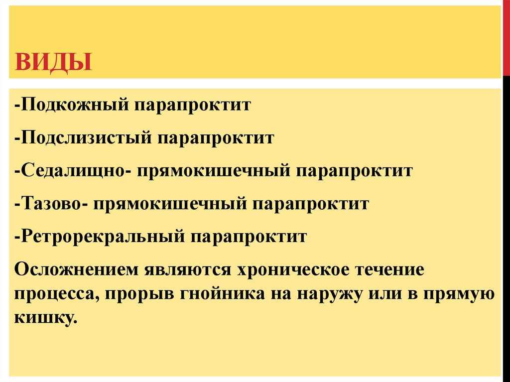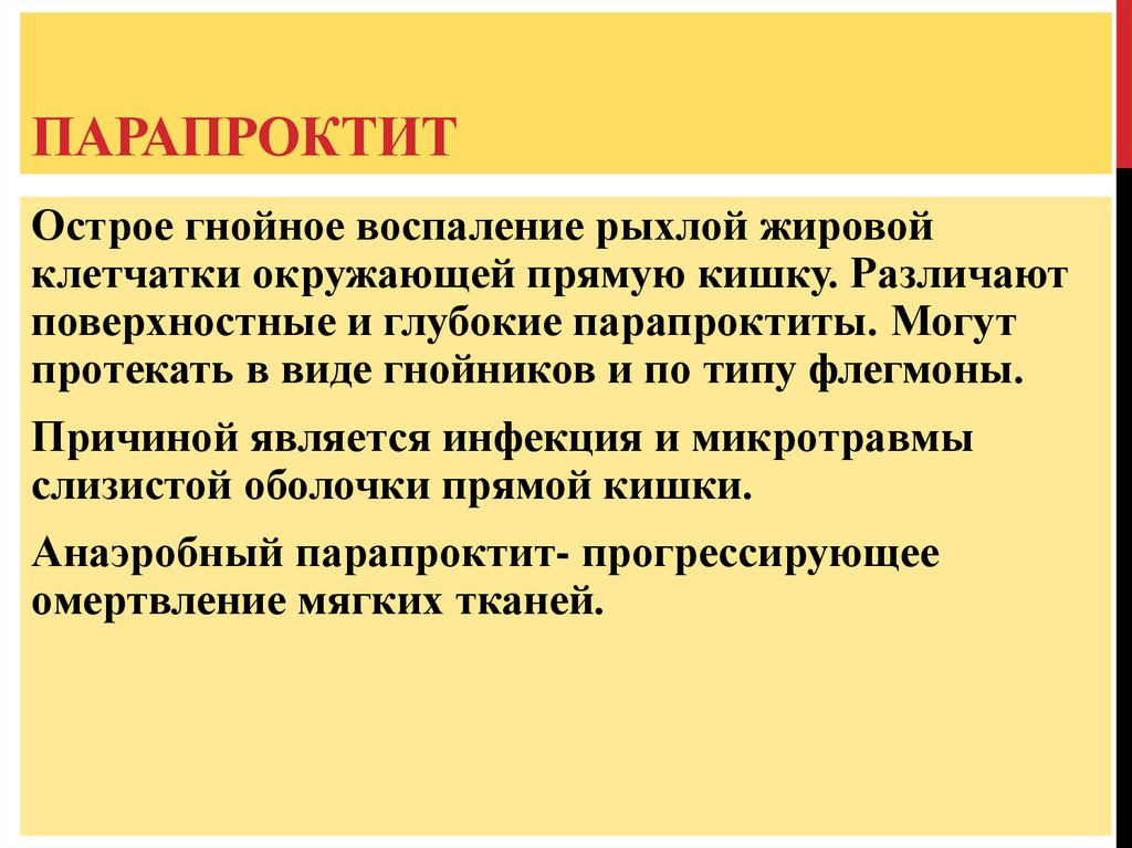 ПАРАПРОКТИТОстрое гнойное воспаление рыхлой жировой