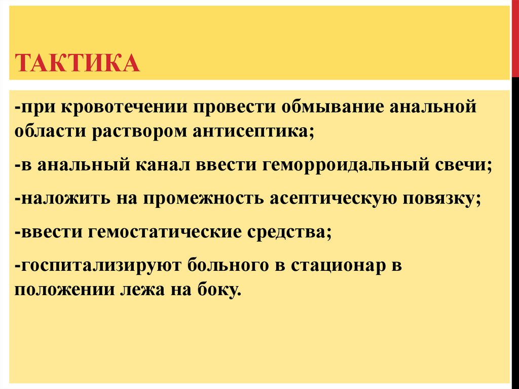 ТАКТИКА-при кровотечении провести обмывание анальной