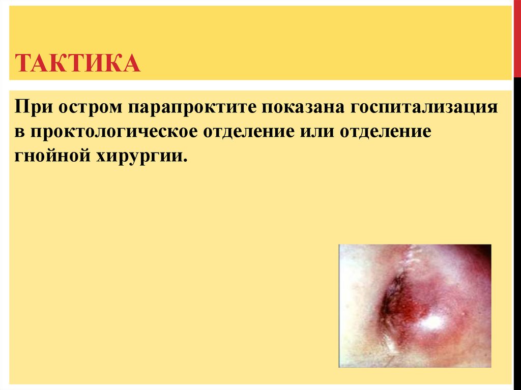 ТАКТИКАПри остром парапроктите показана госпитализация