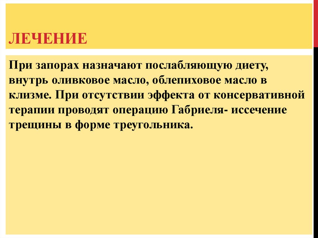 ЛЕЧЕНИЕПри запорах назначают послабляющую диету,