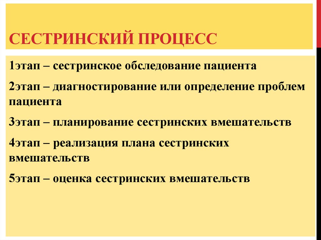 СЕСТРИНСКИЙ ПРОЦЕСС1этап – сестринское обследование пациента