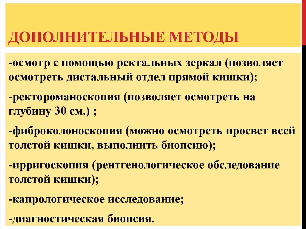 ДОПОЛНИТЕЛЬНЫЕ МЕТОДЫ-осмотр с помощью ректальных зеркал (позволяет