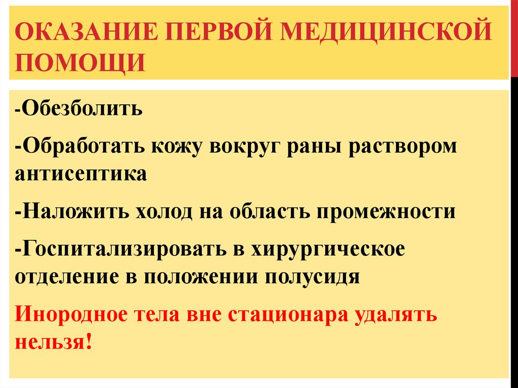 Инородное тела вне стационара удалять