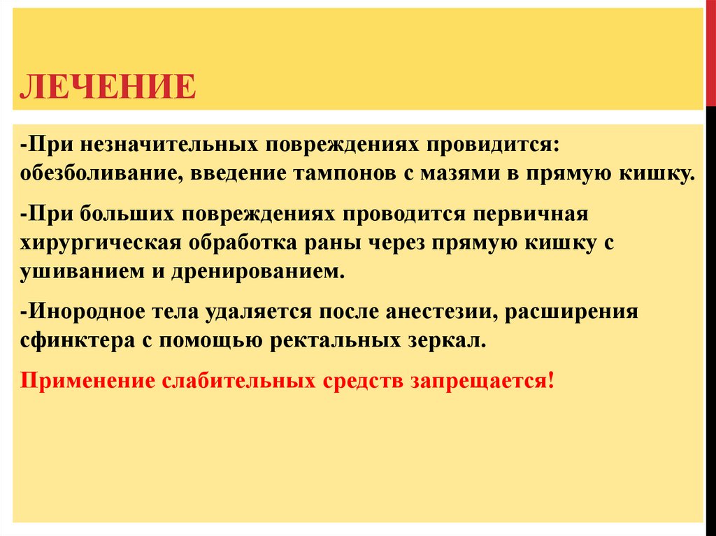 Применение слабительных средств запрещается!