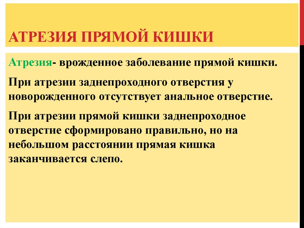 АТРЕЗИЯ ПРЯМОЙ КИШКИАтрезия- врожденное заболевание прямой кишки.