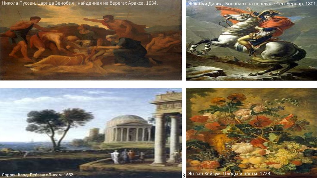 Никола Пуссен. Царица Зенобия , найденная на берегах Аракса. 1634.Лоррен Клод. Пейзаж с Энеем. 1662.