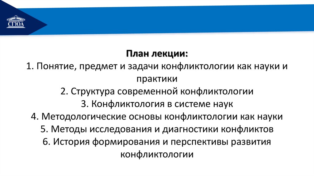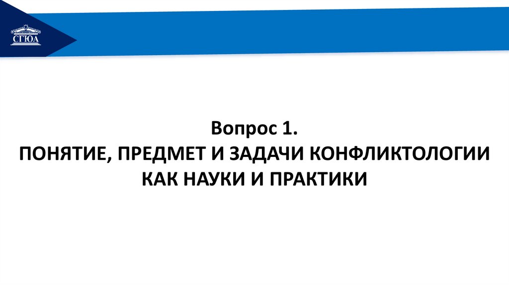 ПОНЯТИЕ, ПРЕДМЕТ И ЗАДАЧИ КОНФЛИКТОЛОГИИ