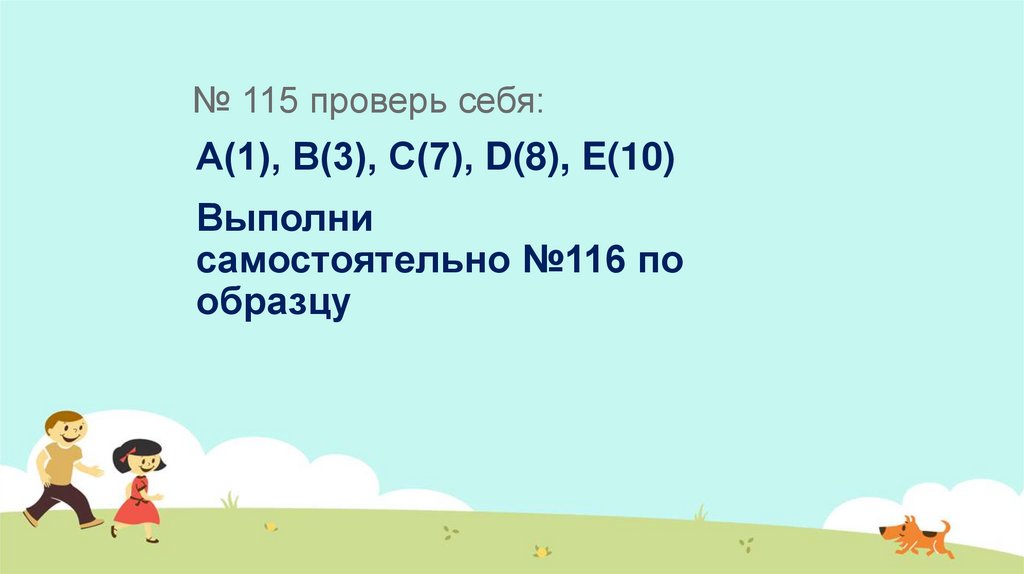 № 115 проверь себя:А(1), В(3), С(7), D(8), E(10)