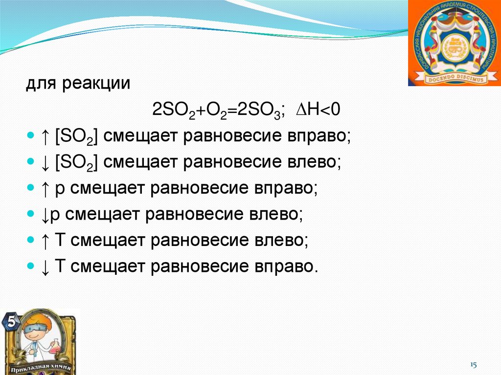 ↑ [SO2] смещает равновесие вправо;