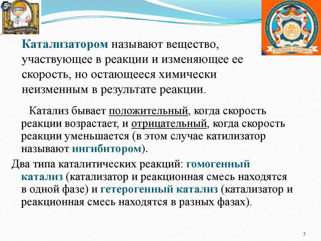 в одной фазе) и гетерогенный катализ (катализатор и