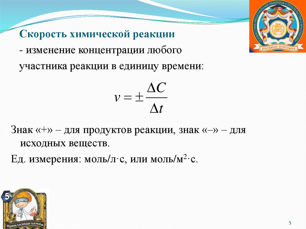 химических реакций и скорости их протекания.