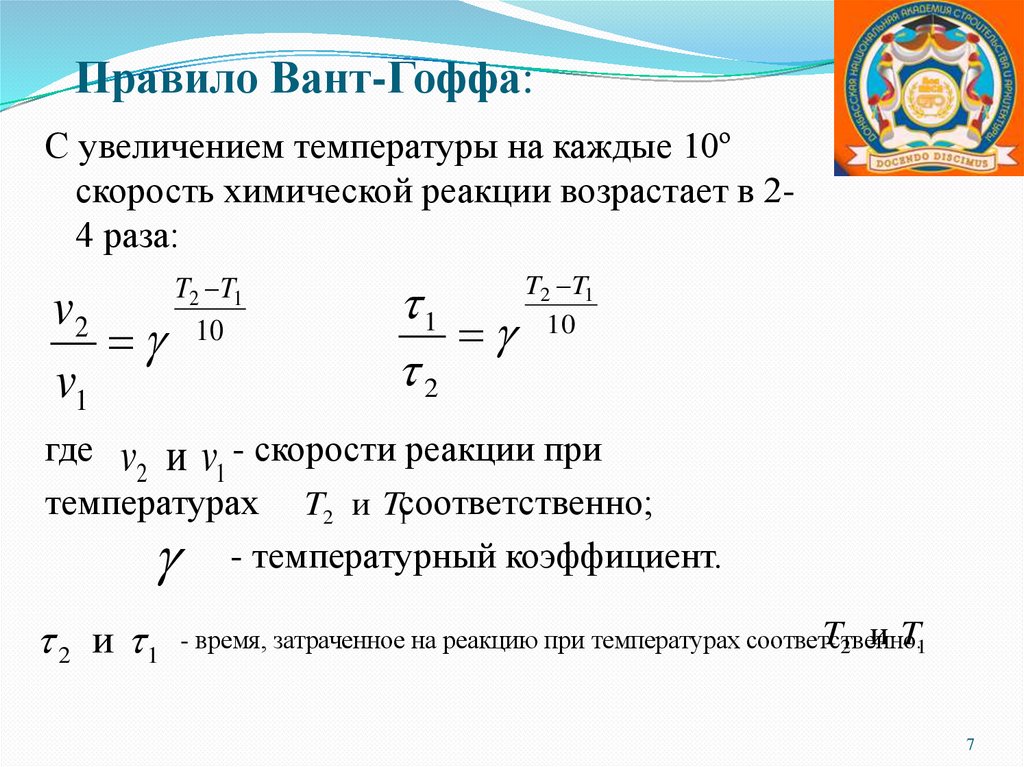 Правило Вант-Гоффа:С увеличением температуры на каждые 10º