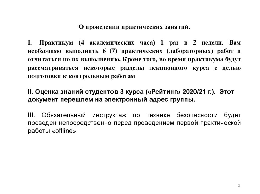 О проведении практических занятий.I. Практикум (4 академических часа) 1 раз в 2 недели. Вам