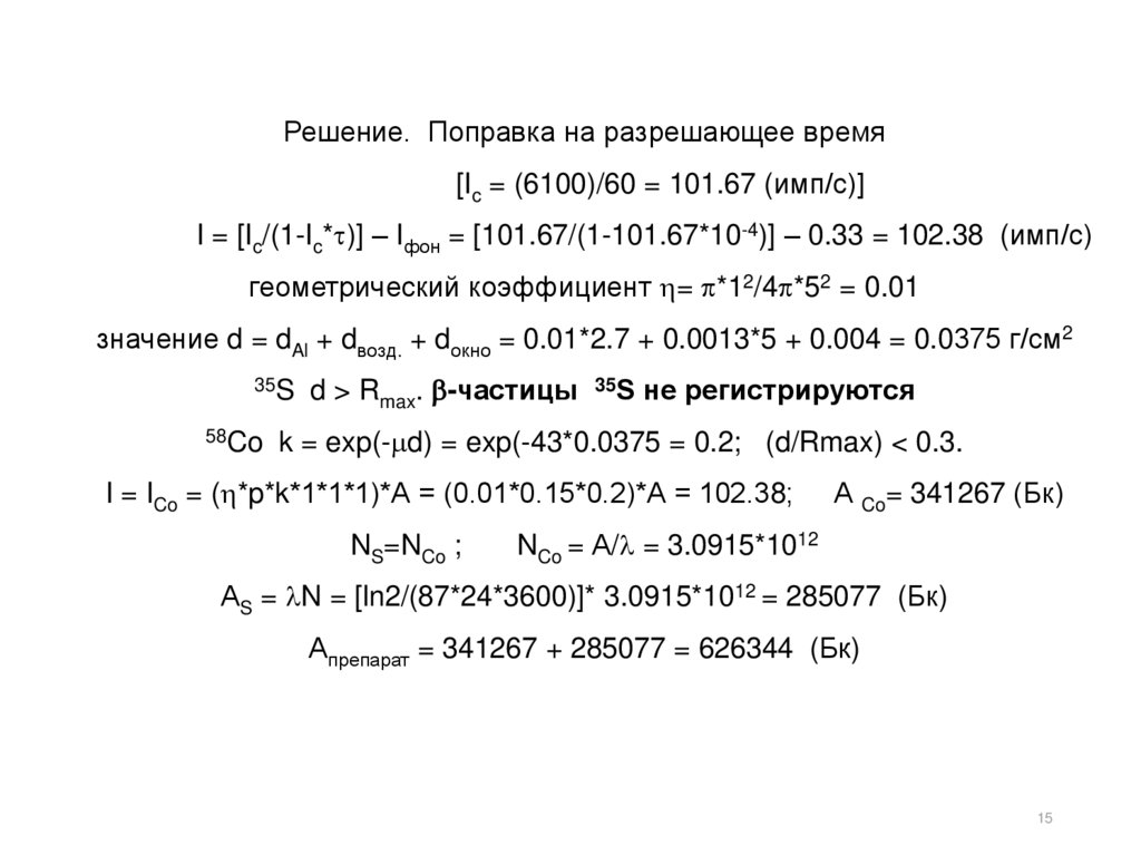 Решение. Поправка на разрешающее время[Ic = (6100)/60 = 101.67 (имп/с)]