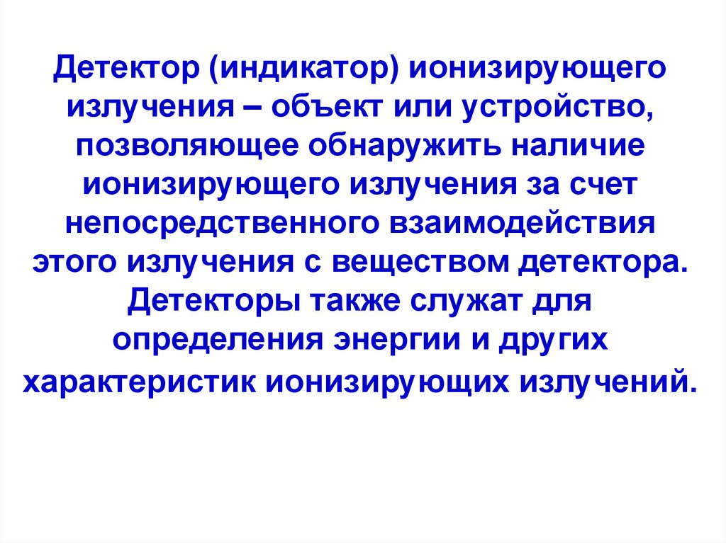 Детектор (индикатор) ионизирующегоизлучения – объект или устройство,