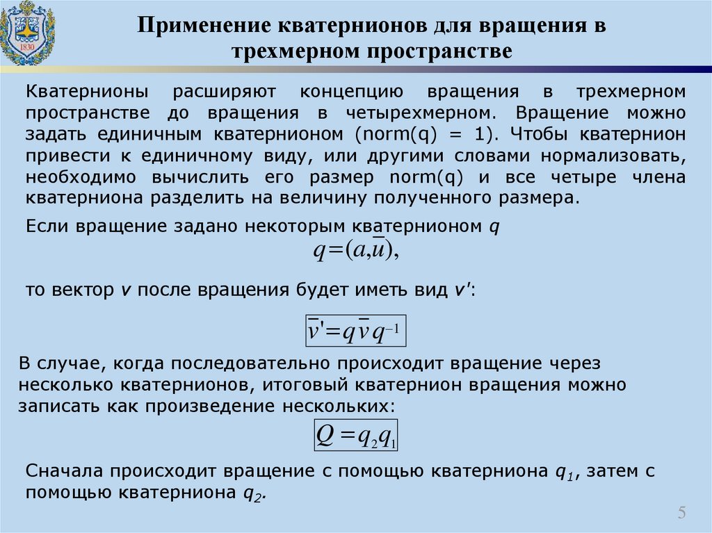 Применение кватернионов для вращения втрехмерном пространстве
