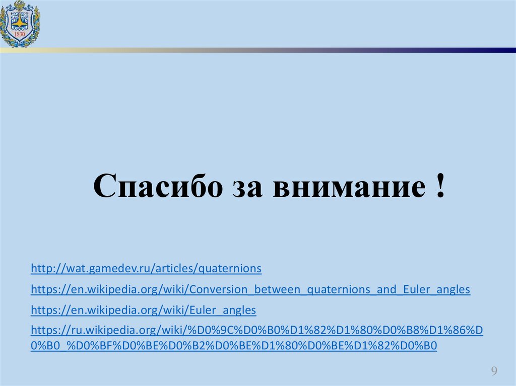 Спасибо за внимание !http://wat.gamedev.ru/articles/quaternions