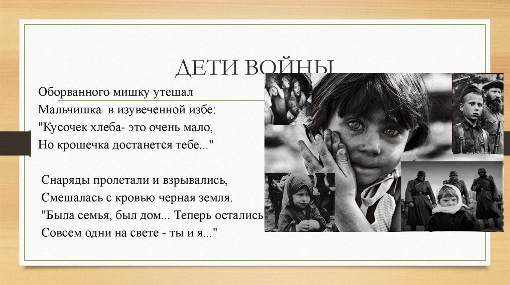 ДЕТИ ВОЙНЫОборванного мишку утешал