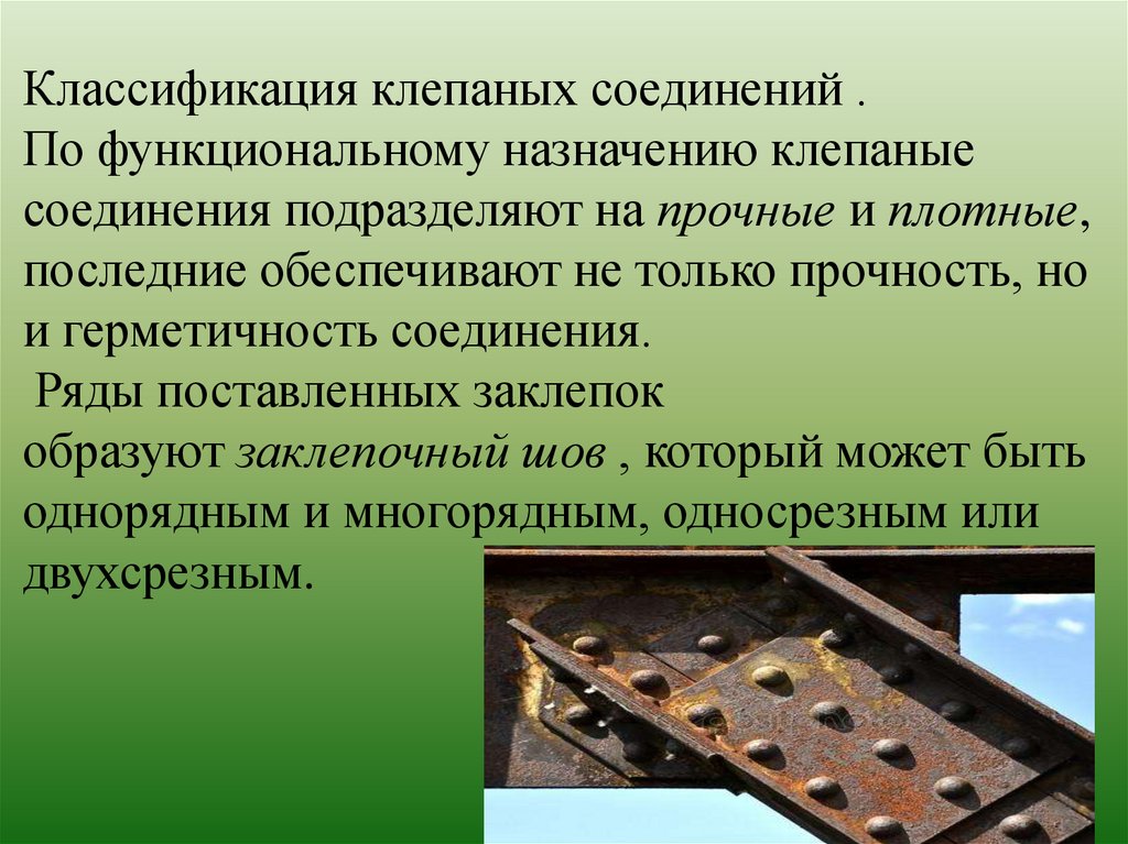 Классификация клепаных соединений .По функциональному назначению клепаные