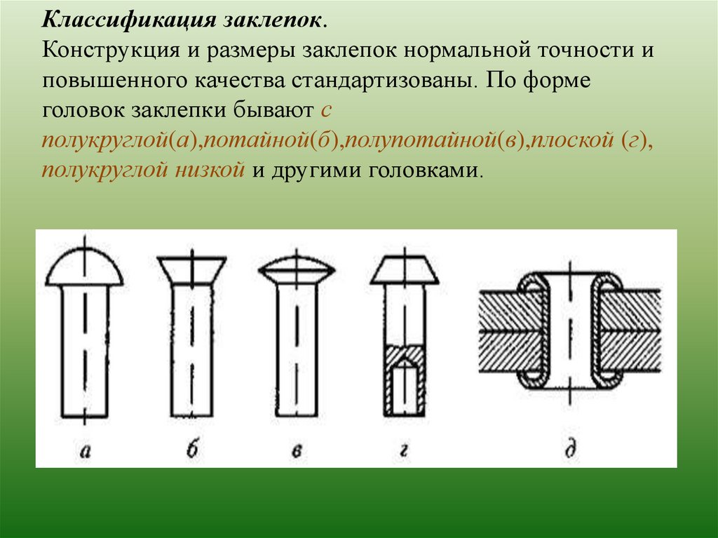 Классификация заклепок.Конструкция и размеры заклепок нормальной точности и