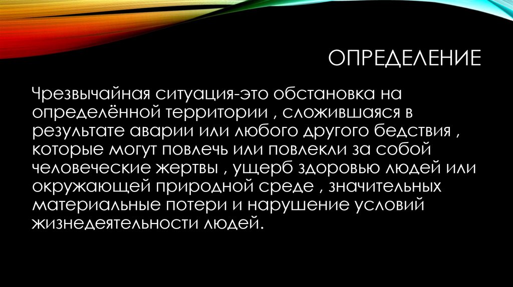ОПРЕДЕЛЕНИЕЧрезвычайная ситуация-это обстановка на