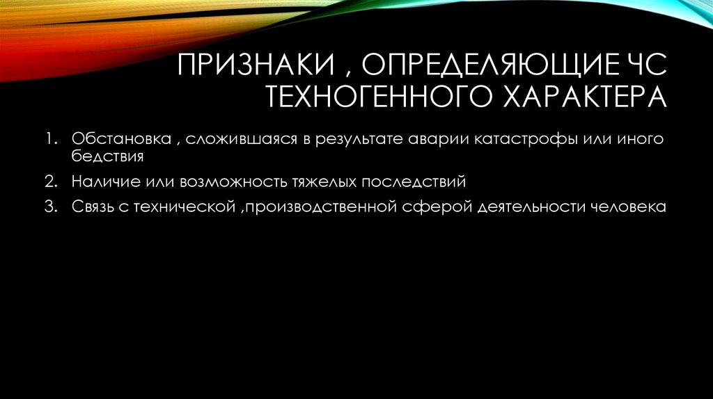 ПРИЗНАКИ , ОПРЕДЕЛЯЮЩИЕ ЧСТЕХНОГЕННОГО ХАРАКТЕРА