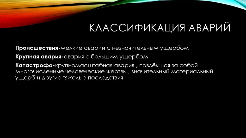 КЛАССИФИКАЦИЯ АВАРИЙПроисшествия-мелкие аварии с незначительным ущербом