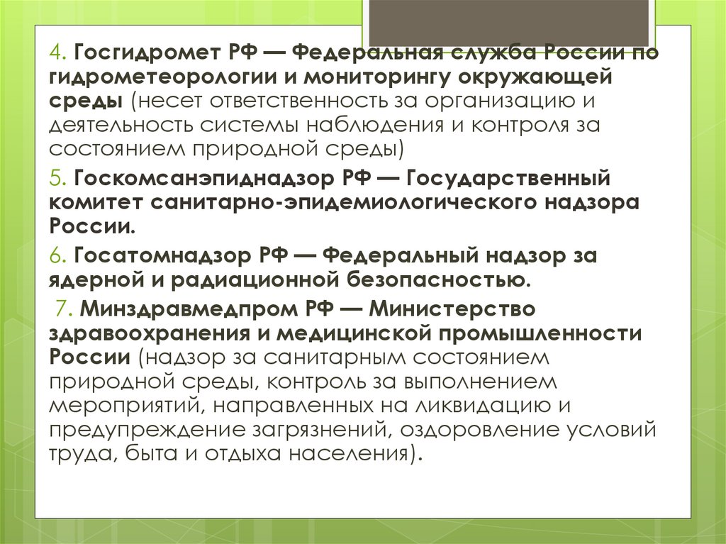 4. Госгидромет РФ — Федеральная служба России погидрометеорологии и мониторингу окружающей