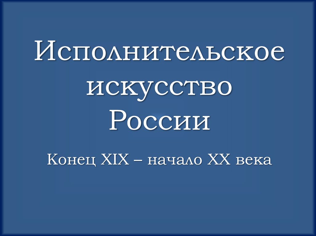 Исполнительское искусство России. Конец XIX – начало XX века