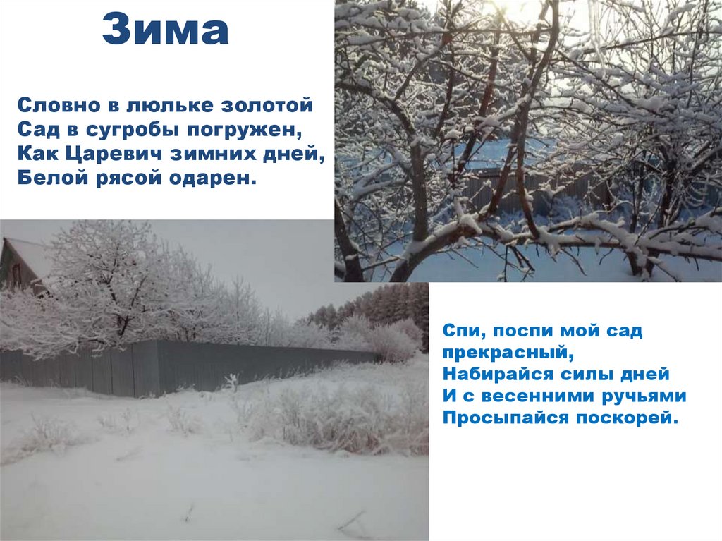 Сад в сугробы погружен,