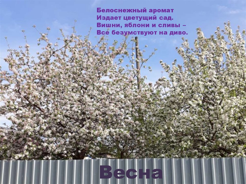 Белоснежный ароматИздает цветущий сад.