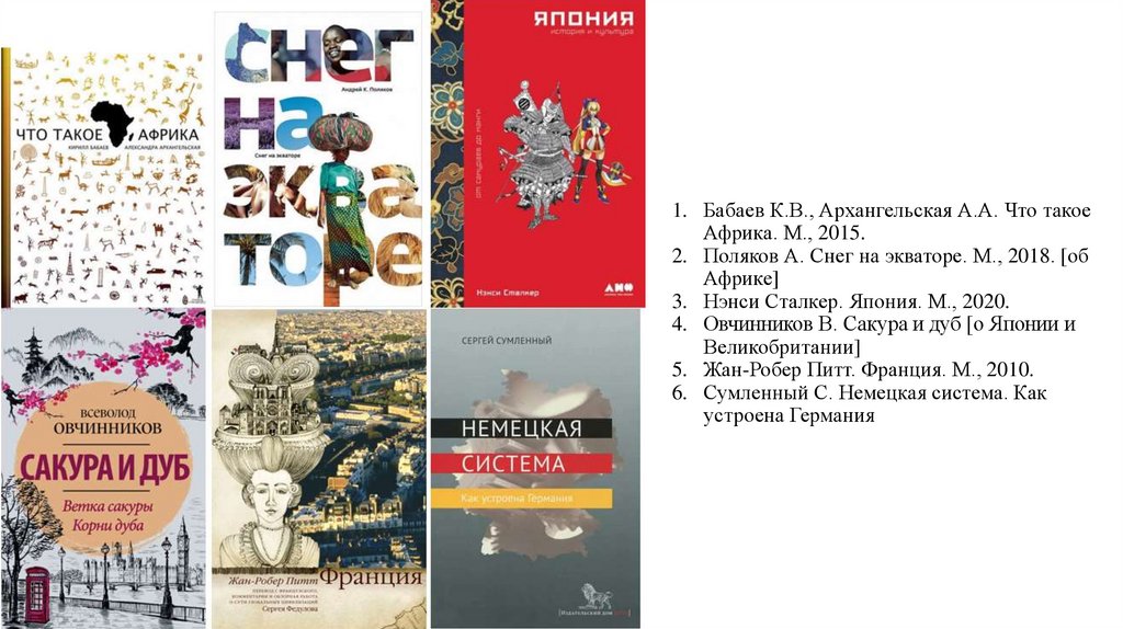 1. Бабаев К.В., Архангельская А.А. Что такоеАфрика. М., 2015.