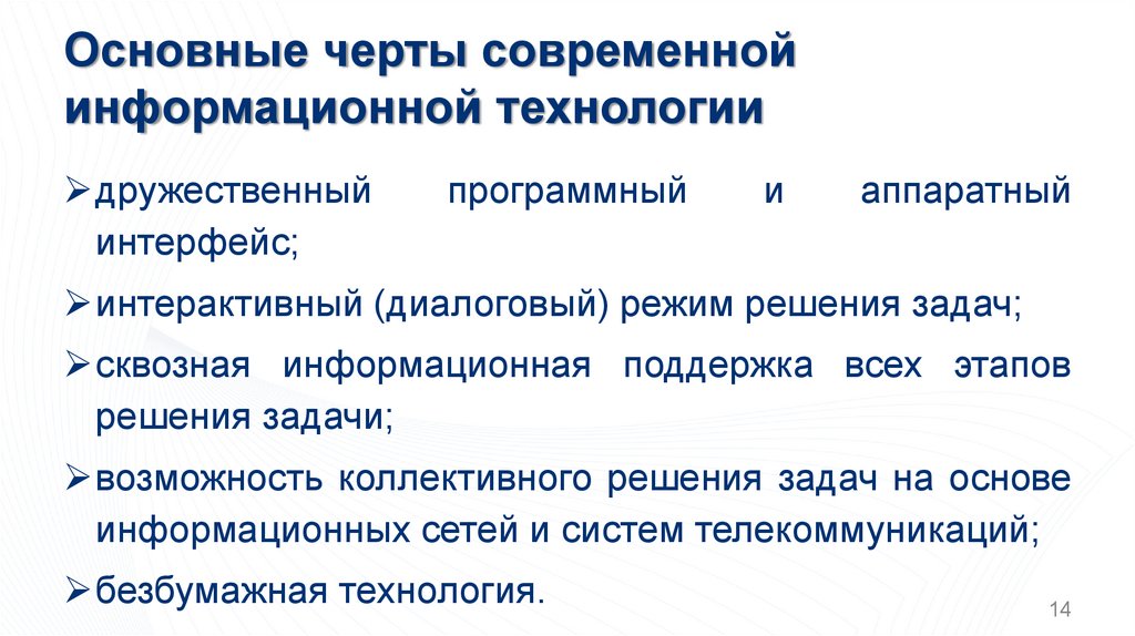 Основные черты современнойинформационной технологии