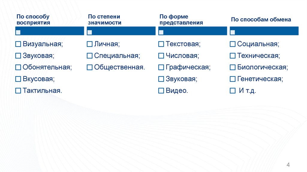 Виды информации: