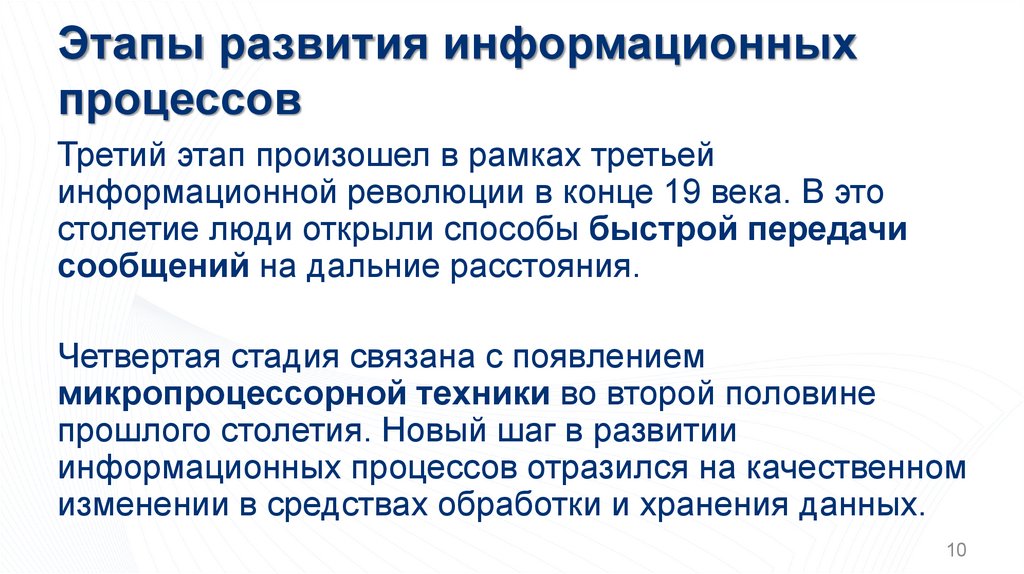 Этапы развития информационныхпроцессов