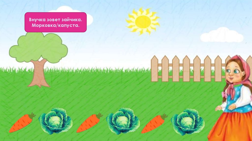 Внучка зовет зайчика.Морковка/капуста.
