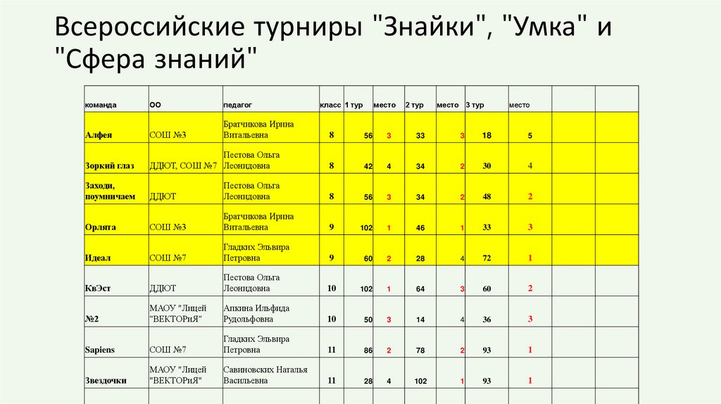 Всероссийские турниры "Знайки", "Умка" и"Сфера знаний"