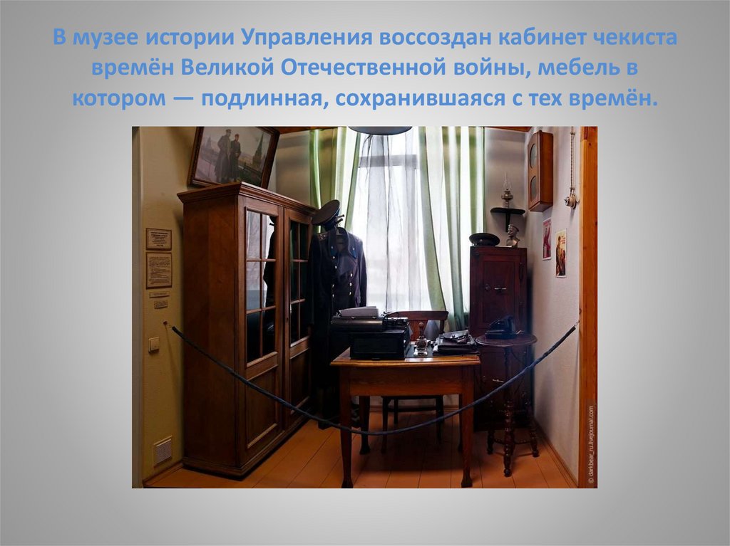 В музее истории Управления воссоздан кабинет чекиставремён Великой Отечественной войны, мебель в