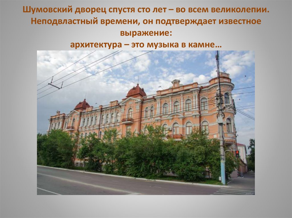 Шумовский дворец спустя сто лет – во всем великолепии.Неподвластный времени, он подтверждает известное