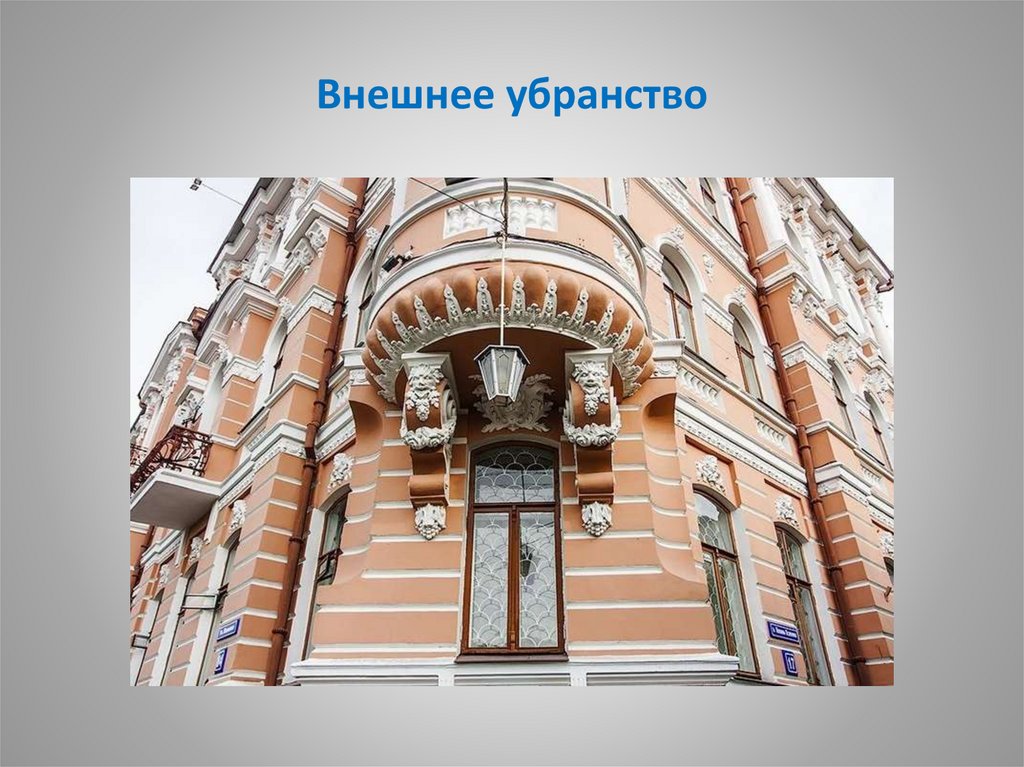 Фасад здания дворца украшен большим количествомизящных деталей: лепнины с цветочными мотивами,