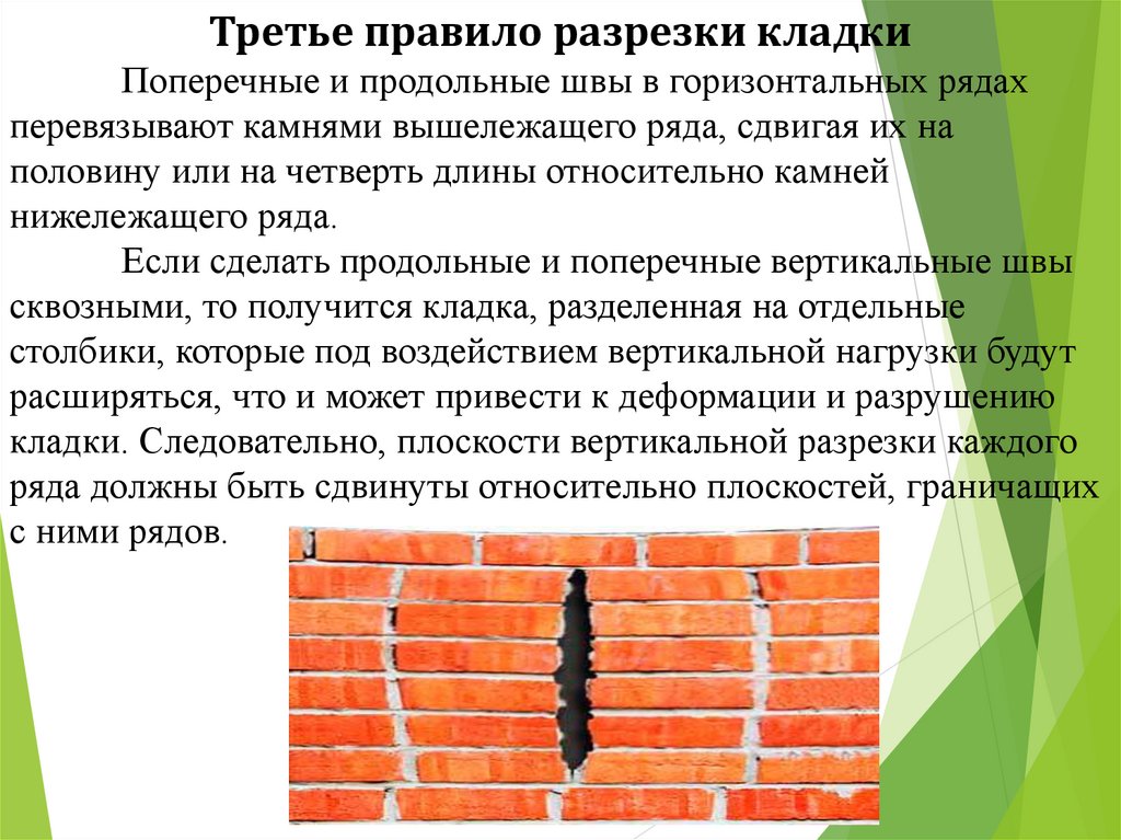 Третье правило разрезки кладкиПоперечные и продольные швы в горизонтальных рядах