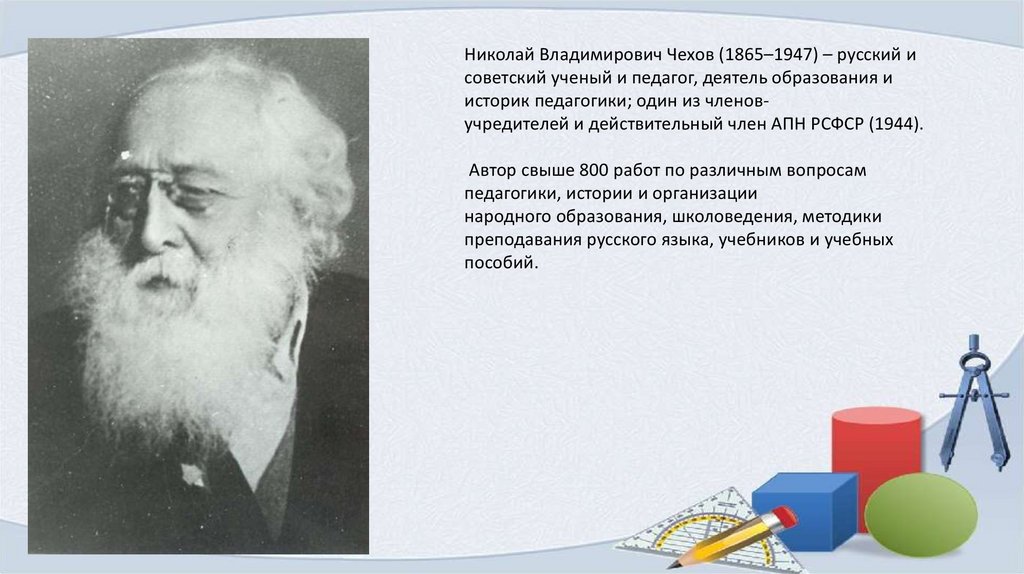 Николай Владимирович Чехов (1865–1947) – русский исоветский ученый и педагог, деятель образования и