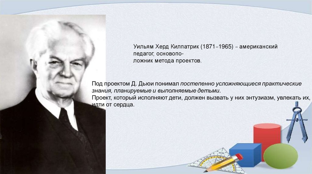 Уильям Херд Килпатрик (1871–1965) – американскийпедагог, основоположник метода проектов.