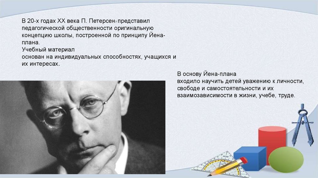 В 20-х годах XX века П. Петерсен7 представилпедагогической общественности оригинальную