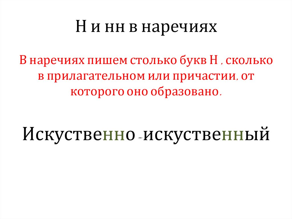 Н и НН в прилагательных, причастиях и наречиях. Повторение