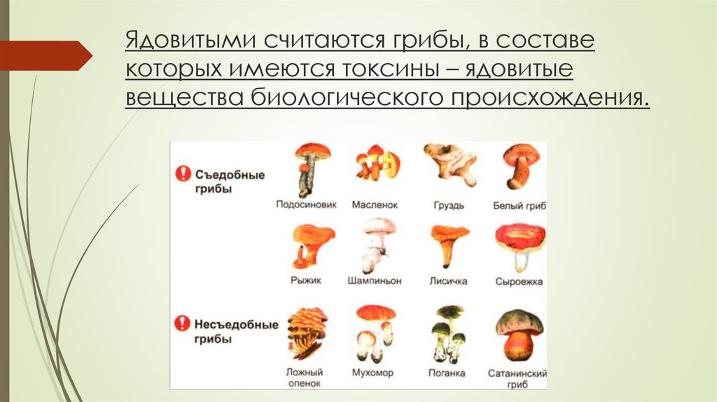 Ядовитыми считаются грибы, в составекоторых имеются токсины – ядовитые