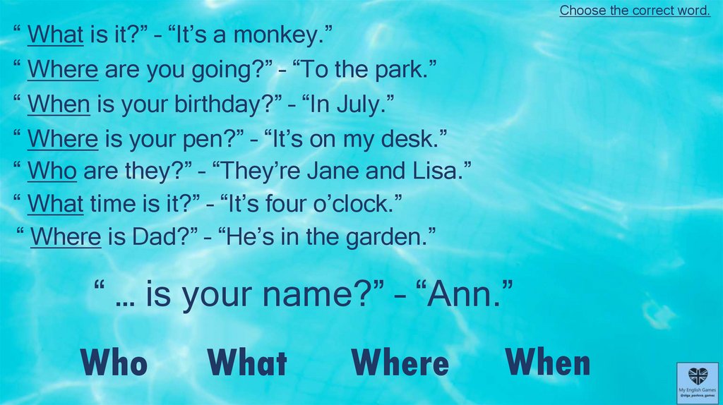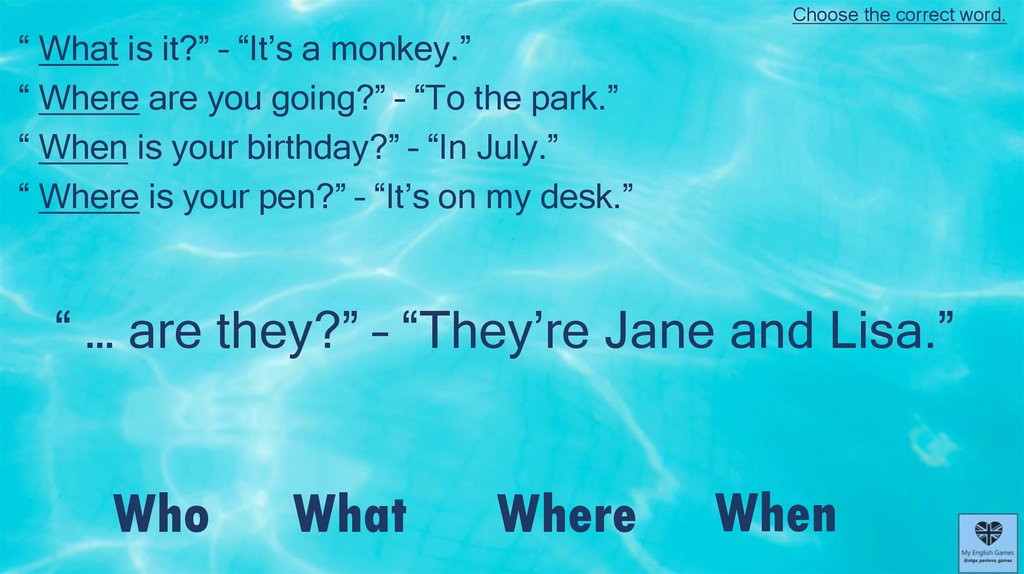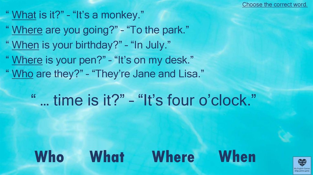 Choose the correct word.“ What is it?” – “It’s a monkey.”