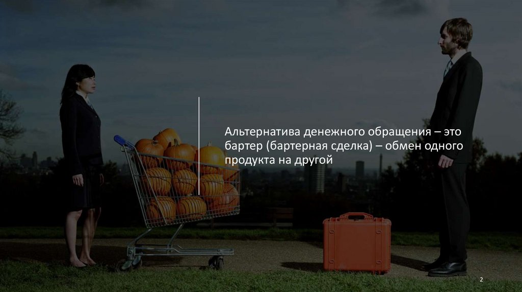 Альтернатива денежного обращения – этобартер (бартерная сделка) – обмен одного