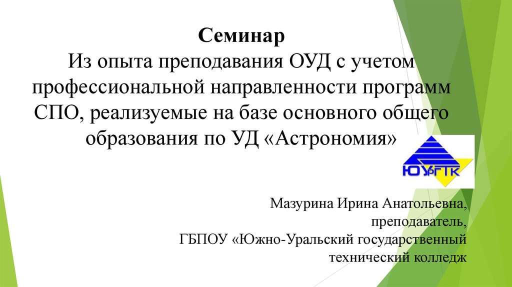 СеминарИз опыта преподавания ОУД с учетом
